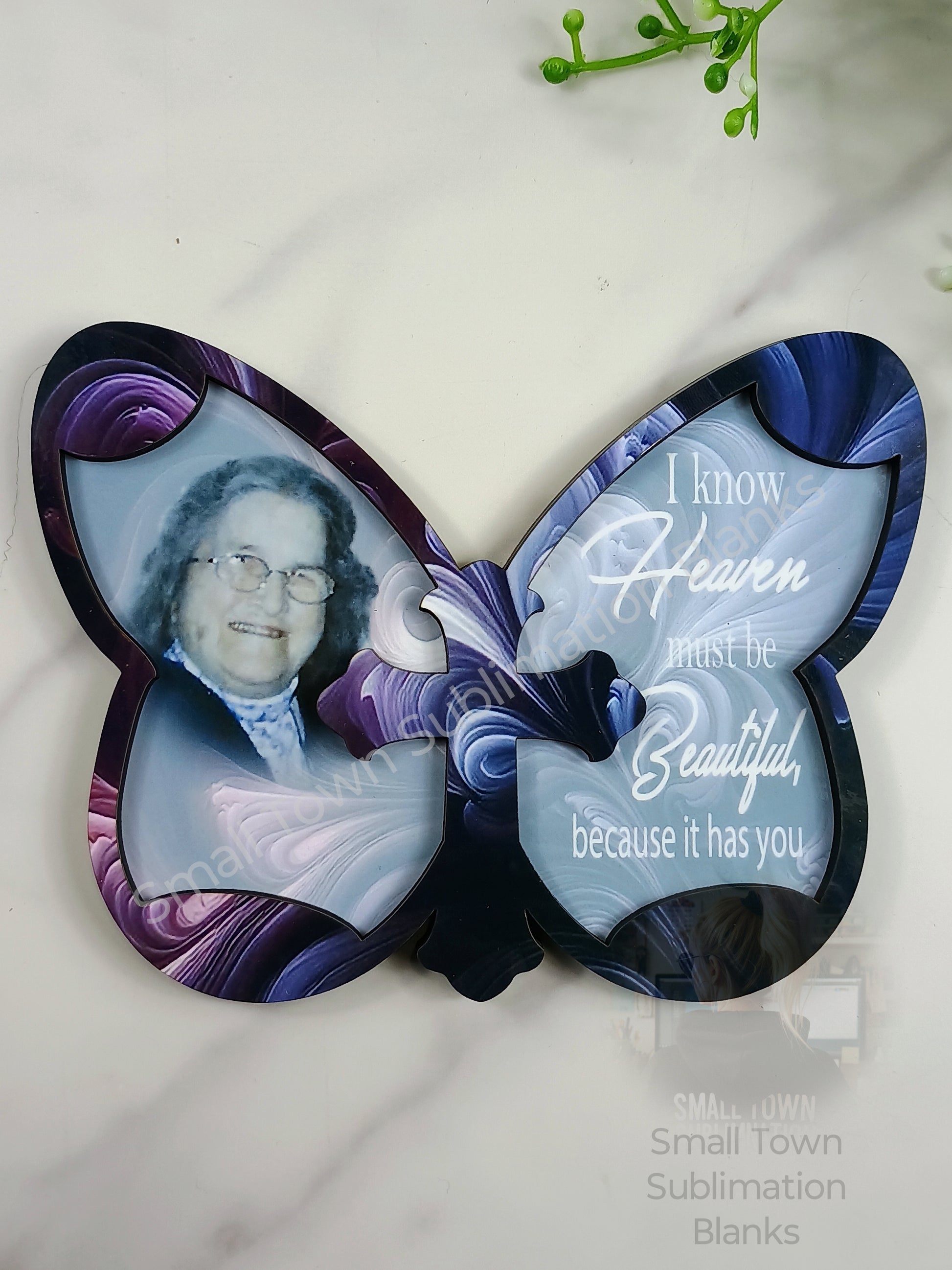 The left side of the butterfly is where you may place your picture or whatever you choose. The wording on the right side is part of the image itself. This is for the large butterfly one.