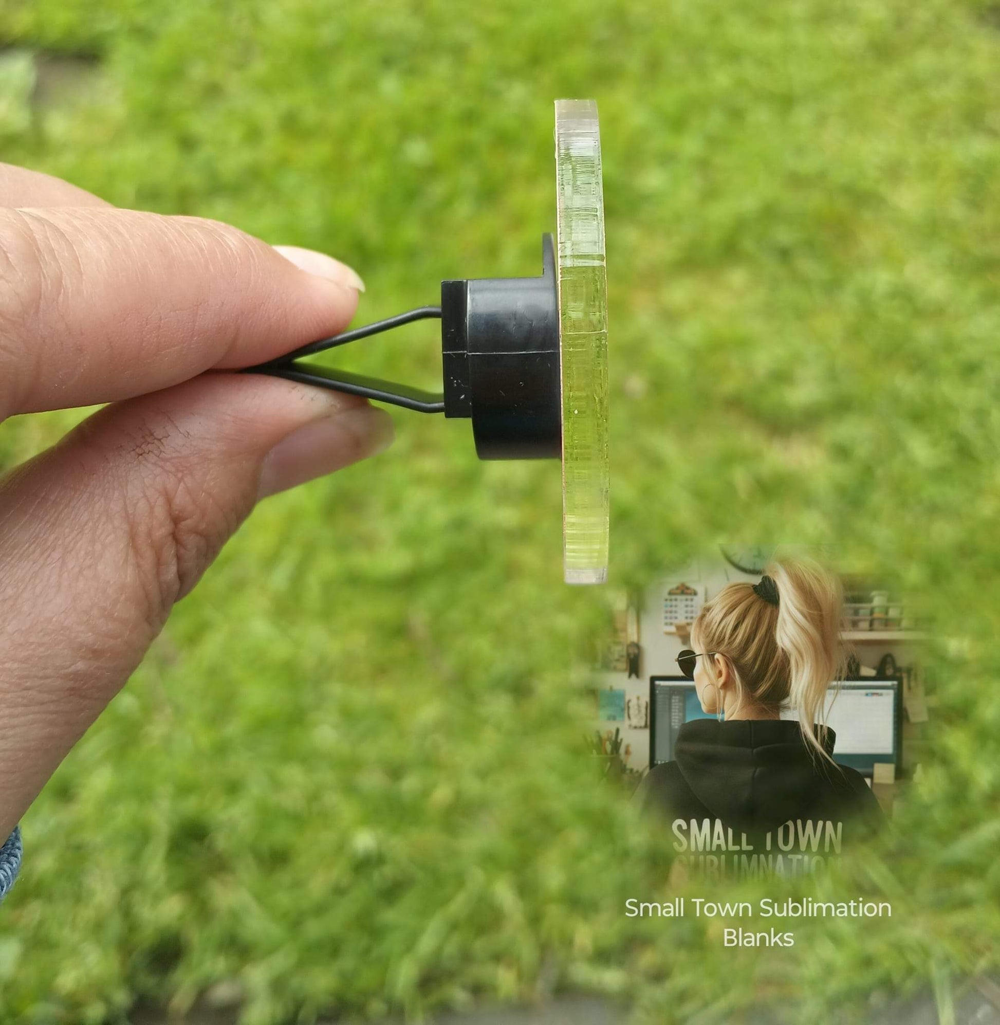 ✅Purchase comes with one 2" square or round clear acrylic disk, connector piece to glue on the back once pressed, clip to slide into connector piece and 1 soft felt round for your essential oil or choice!