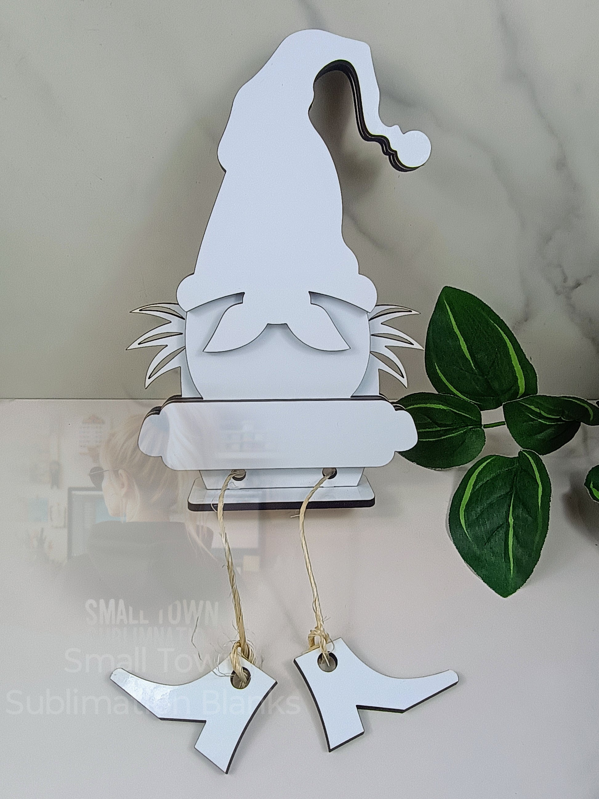 Cute gnome shelf sitter. Sits on a shelf and the legs hang off the shelf. Perfect for every holiday with the interchangeable face and sign!