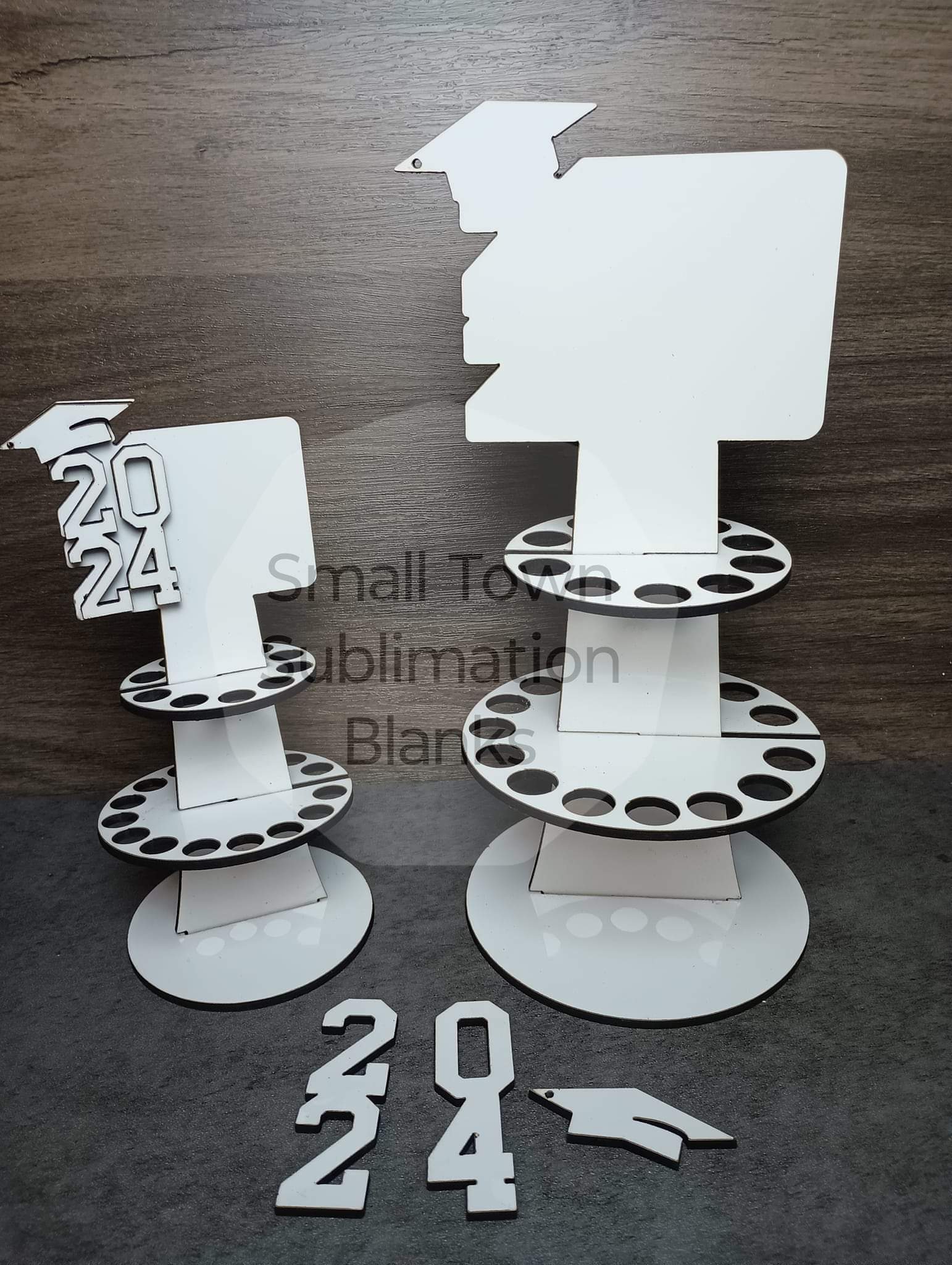 ✅Offering this in two different sizes. Cake topper size and table sitter size. Both come with hole in cap to add a tassel. All blanks only. Single sided