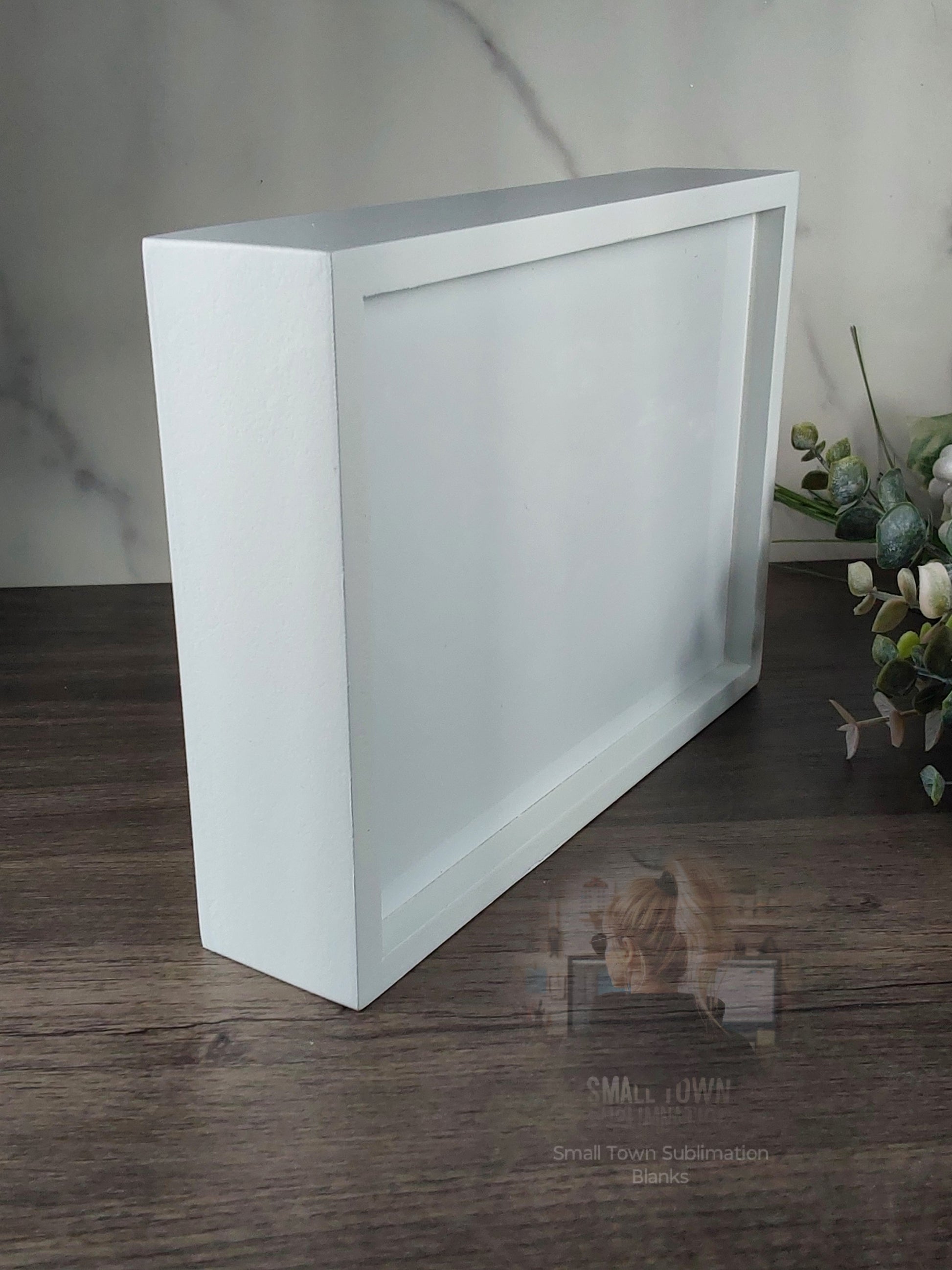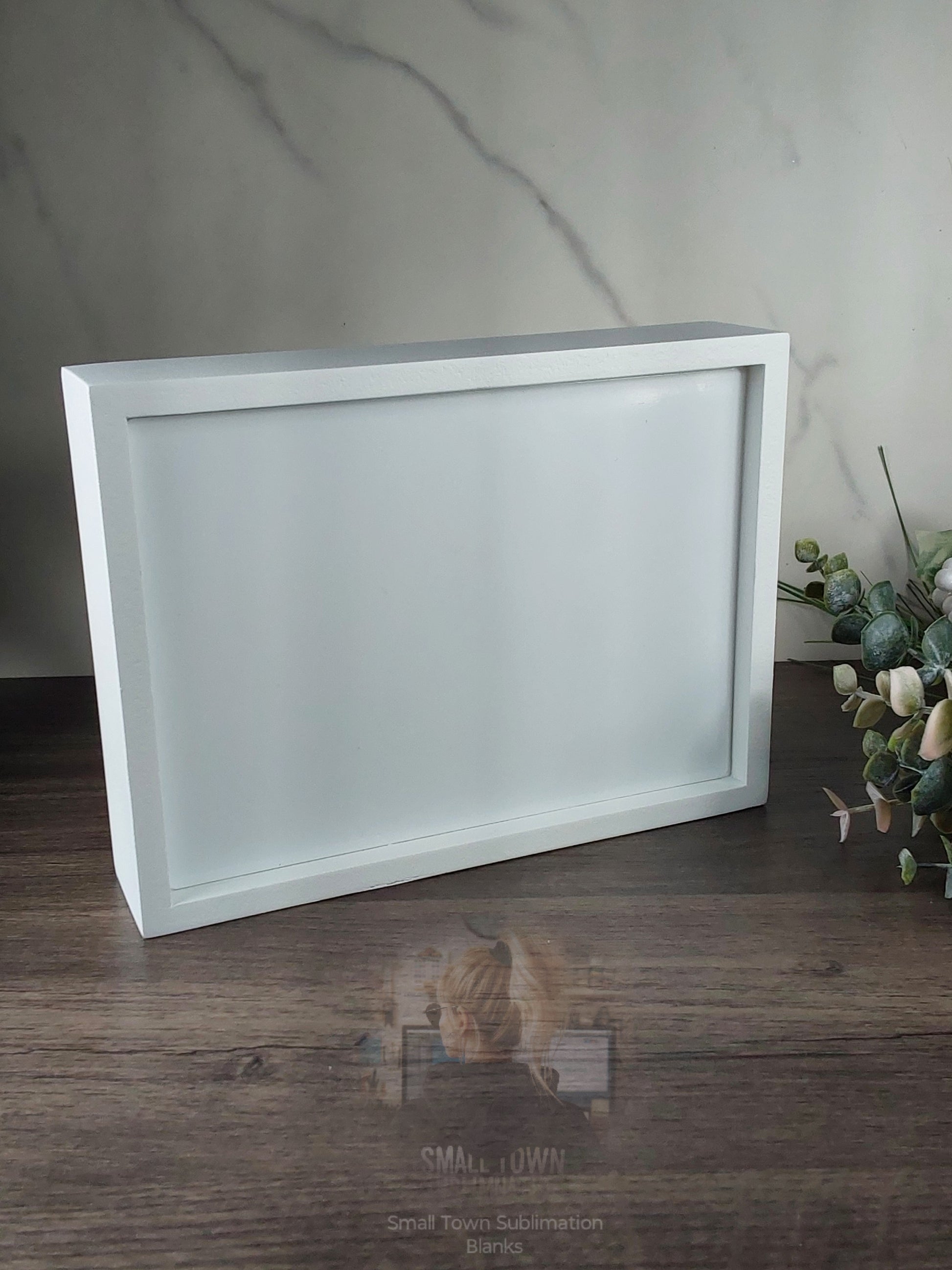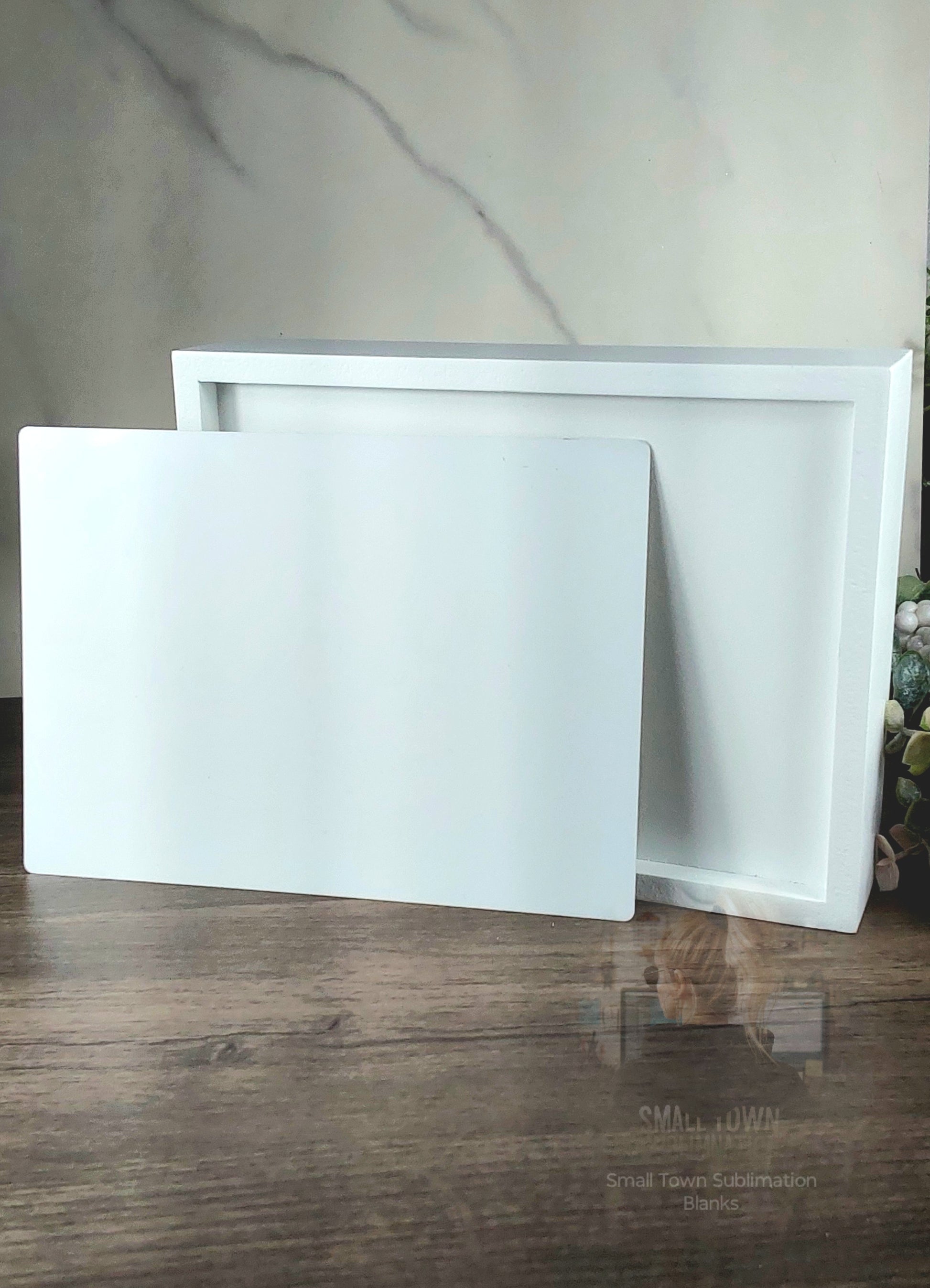 Sublimation aluminum insert is approx 5" x 7". There is plastic on the insert to be removed before sublimating. Then take choice of glue or double sided tape to attach the insert inside the photo box.