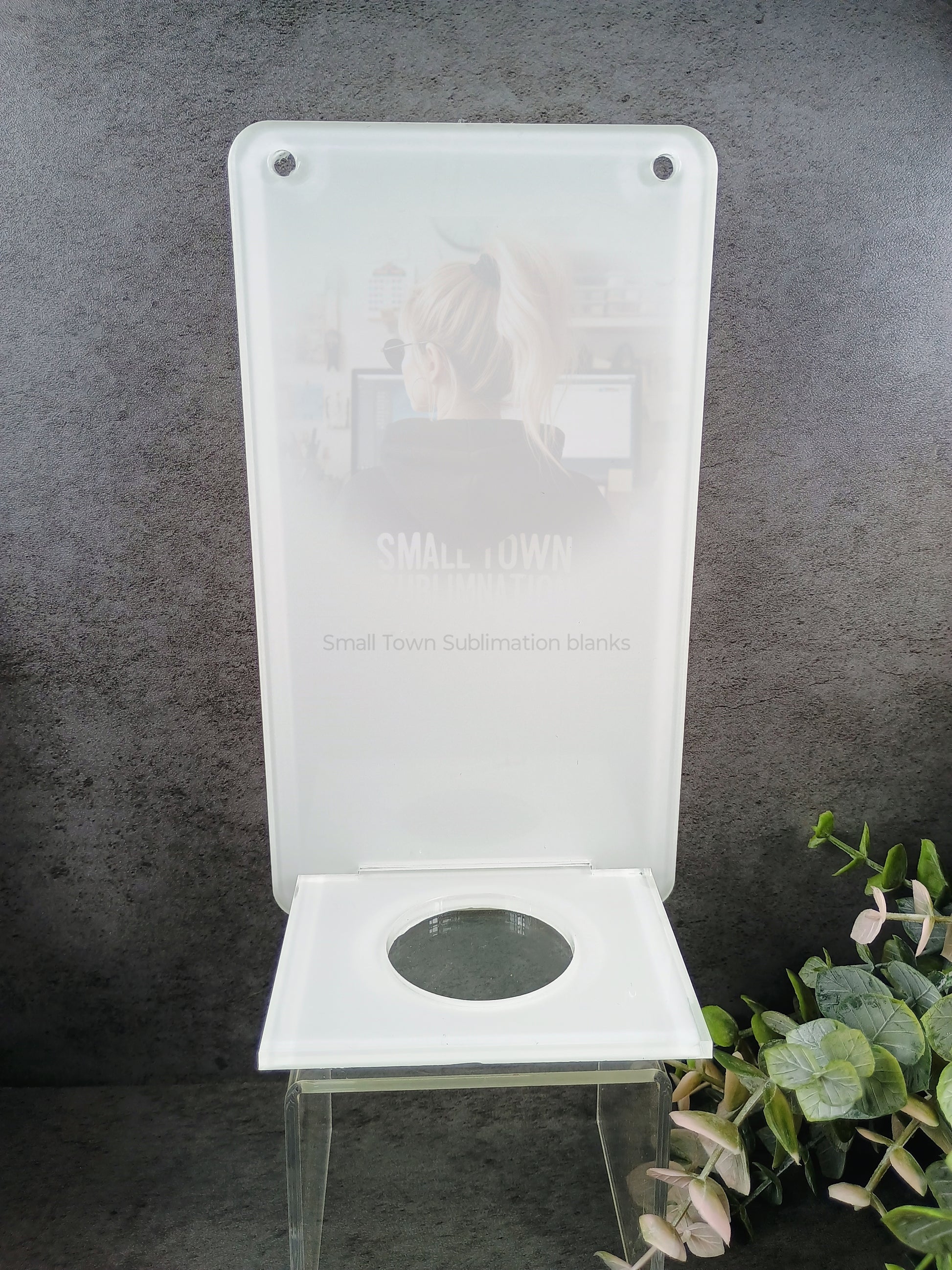 Clear acrylic with white backing