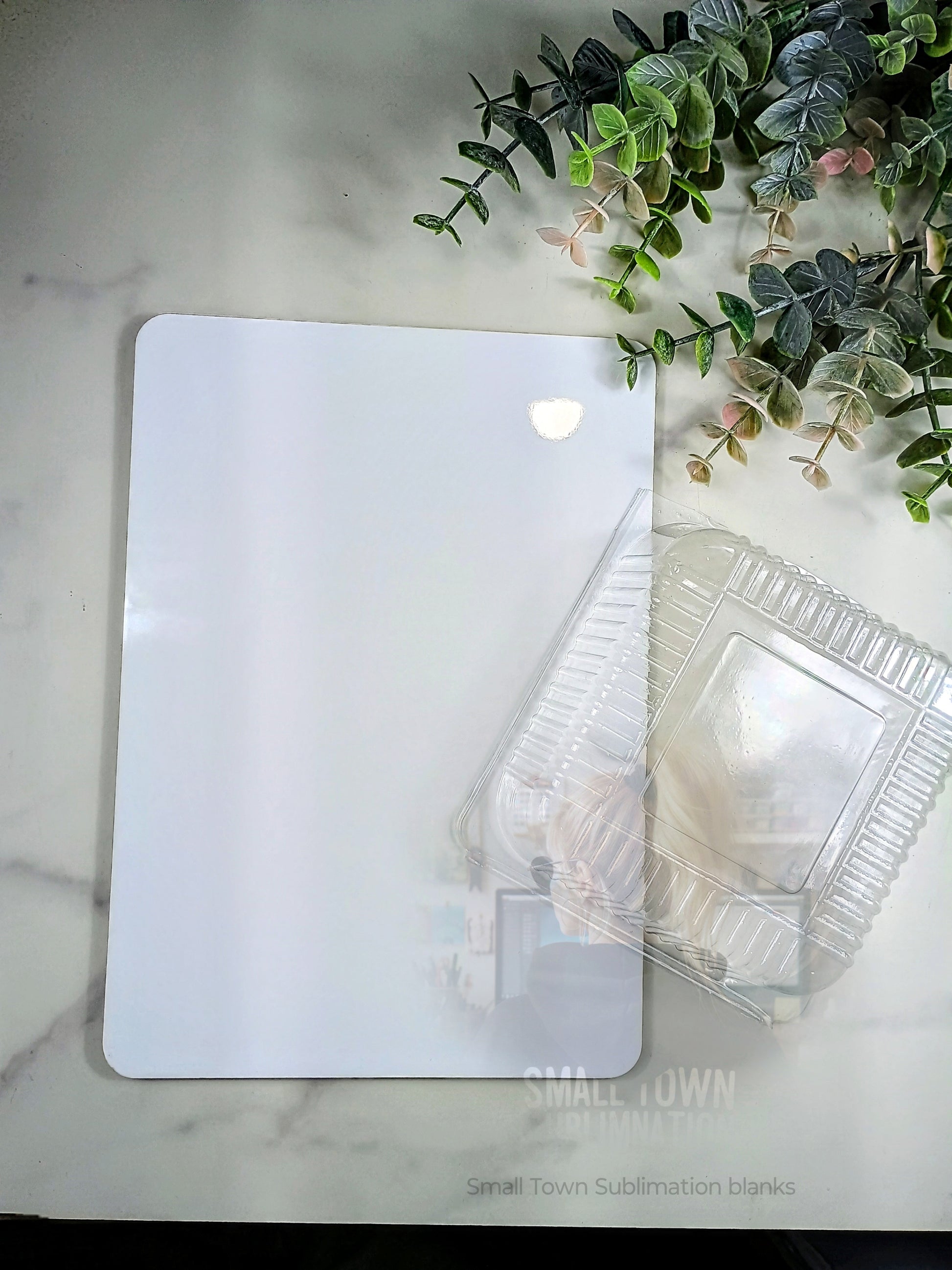 Blank themselves are approx 8.5" x 6" with the plastic being approx 5" x 5"