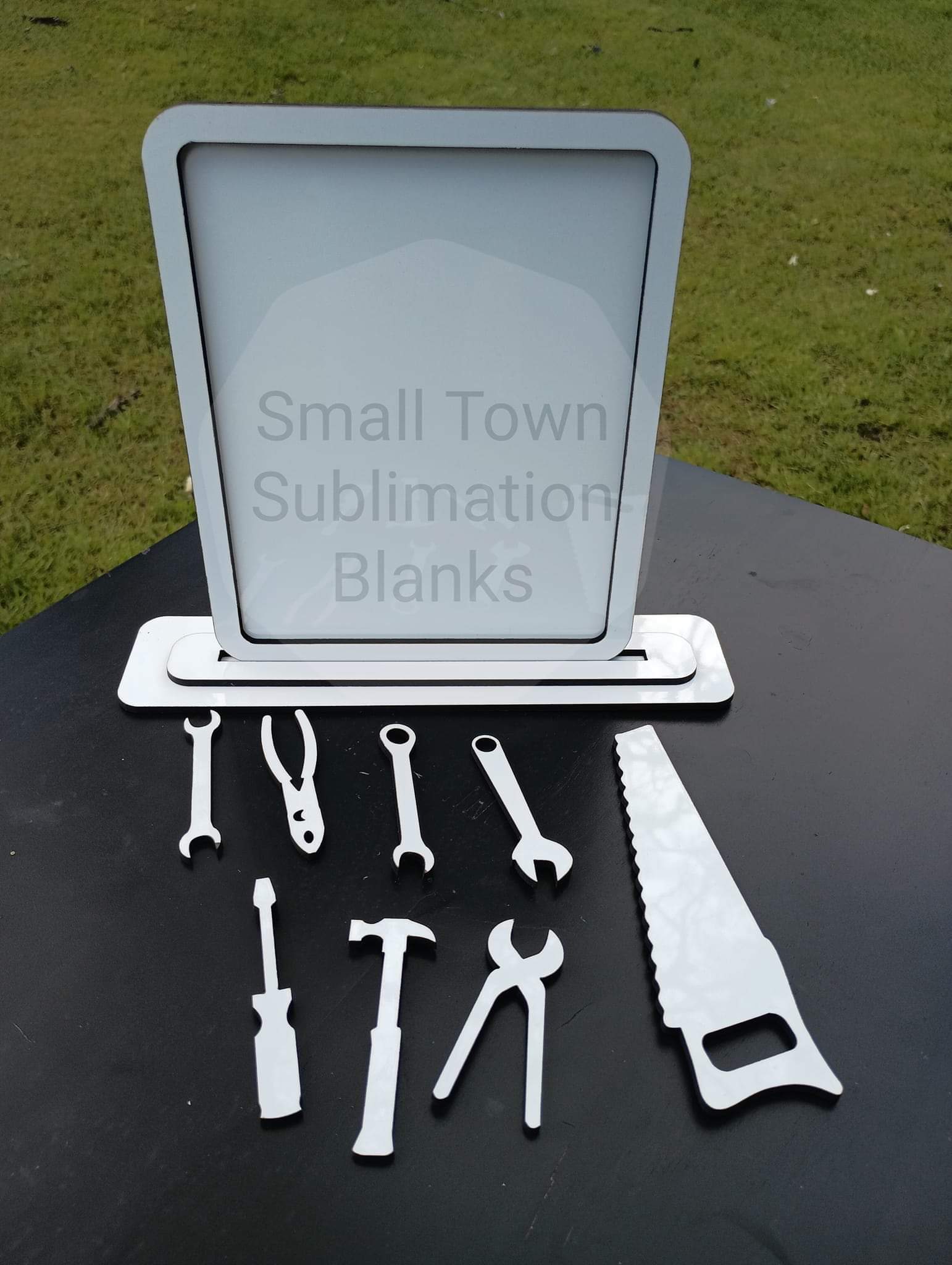 ✅2 piece base and 2 piece frame. Along with 8 tools to glue around the edges of the frame! So total of 12 piece set. So many ways to position them all or only a couple! All sublimatable!