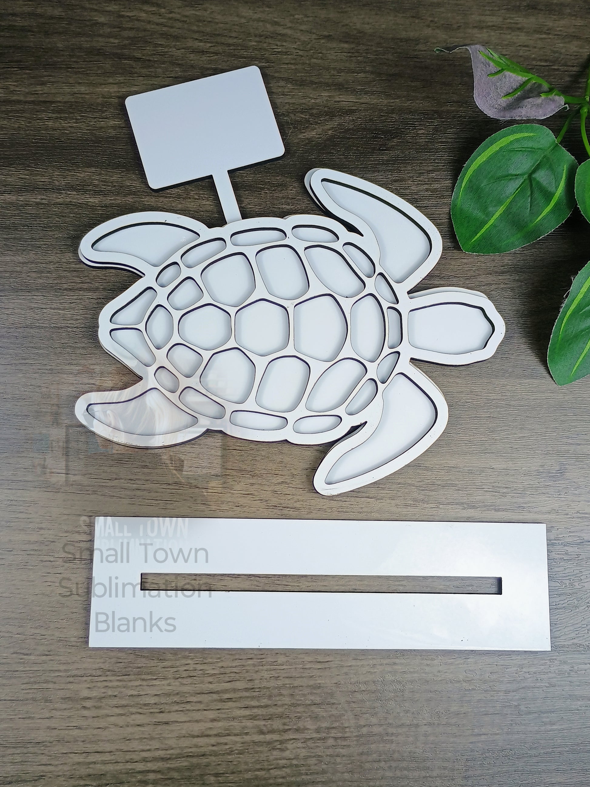 Super cute turtle shelf sitter. Stands up in the base to display on your self with a cute little sign to put wording on if you choose 😍